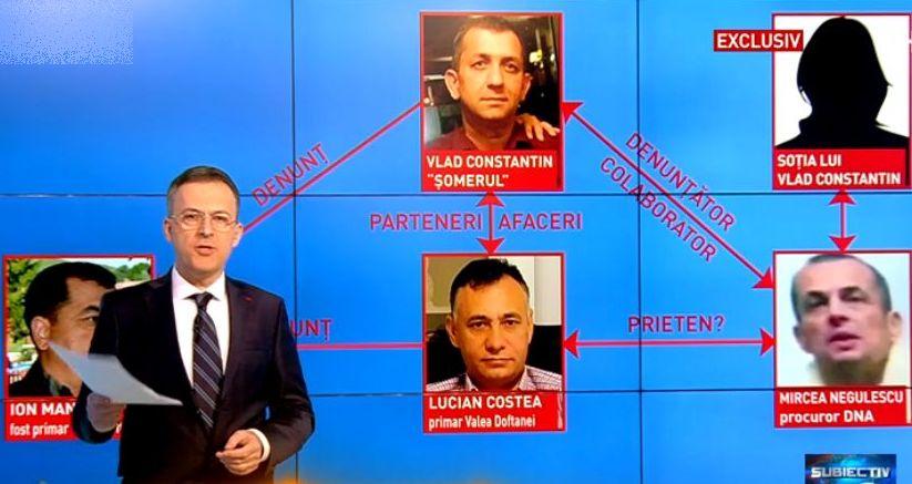 Este vorba despre o discuție care a avut loc în iunie 2015 între primarul din Valea Doftanei, Lucian Costea, și denunțătorul Vlad Constantin, care se plângea într-o ediție Sinteza zilei că procurorul Negulescu îi prevenea pe cei vizați de denunțurile pe care le-a depus la DNA.
