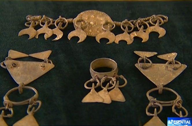 Tezaurul dacic conţine 18 piese: coliere, inele, brăţări sau pandantive care datează din secolul I înainte de Hristos.