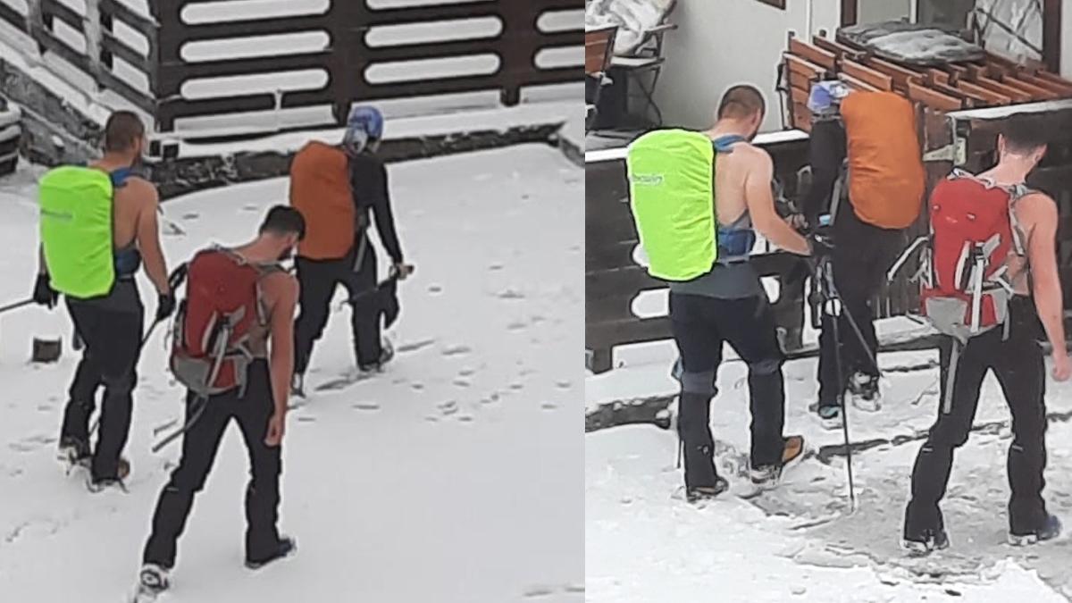 Cei trei tineri fotografiați de salvamontiști voiau să urce pe vârful Parângul Mare, înalt de 2519 m. Aceștia s-au oprit la baza muntelui să ceară informații despre traseu.