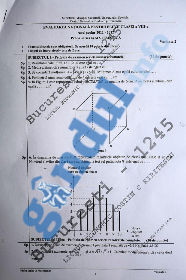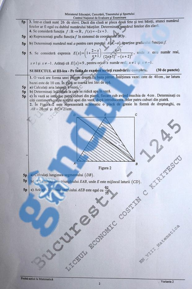 Iată SUBIECTELE de la MATEMATICA