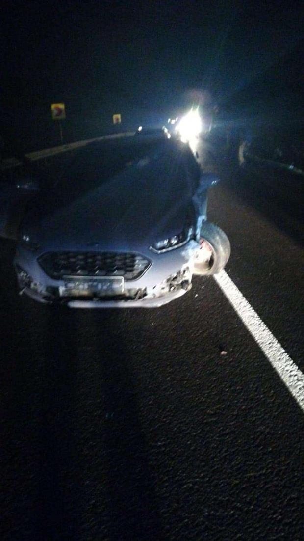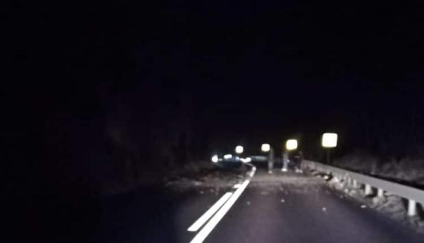 Şoferul unei autoutilitare a încercat să evite bolovanii, a ricoşat pe contrasens şi s-a ciocnit cu un tir. În urma impactului, autoturismul a fost avariat. Din fericire, nu au existat victime umane.