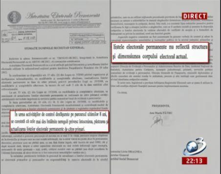 Documentul prezentat aseară de Mihai Gâdea era semnat de Ana Maria Pătru, preşedintele Autorităţii Electorale Permanente.