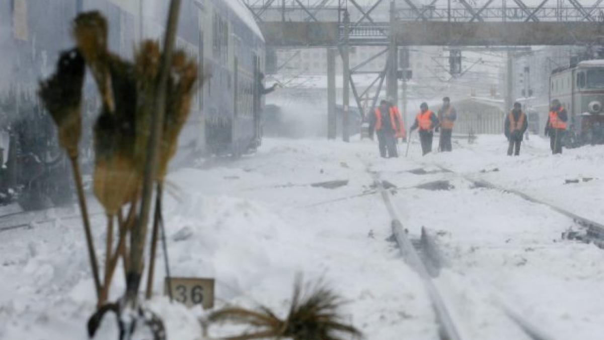 Trenul a fost oprit în stație după ce linia electrică a fost avariată din cauza căderii unor arbori și crengi care au cedat zăpezii abundente.