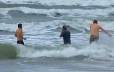 Unul dintre curajoşi iese zgribulit din valuri, în timp ce partenera îl aşteaptă cu un prosop, echipată ca de iarnă. E străin de România, dar nu şi de distracţie. Iar ca el, amatori de senzaţii reci, sunt destui pe litoral.