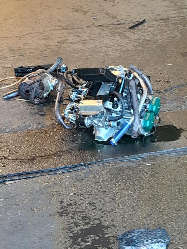 Motorul avionului prăbușit. Foto: SAJ Arad