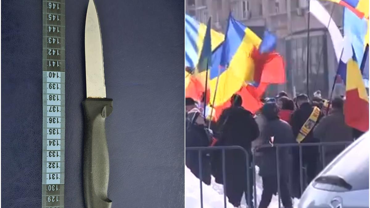 Un bărbat a fost prins cu un cuțit la protestul din Piața Victoriei organizat de AUR pentru Călin Georgescu