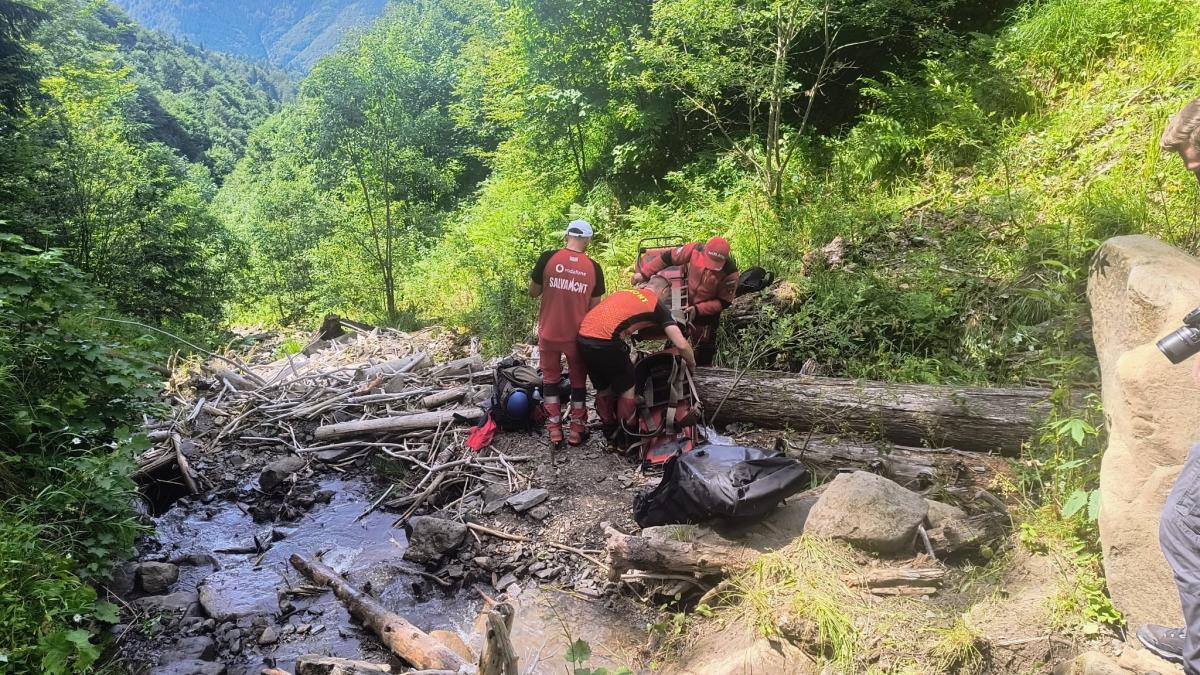 Salvatorii montani au intervenit, iniţial, sâmbătă, în încercarea de a recupera cadavrul, însă acţiunea a fost întreruptă, din cauza căderii nopții, în condiţiile în care vizibilitatea redusă a făcut imposibilă continuarea operaţiunilor iar ciobanul care a descoperit trupul fără viaţă nu i-a putut însoţi pe salvatori pentru a indica locul unde a făcut descoperirea.