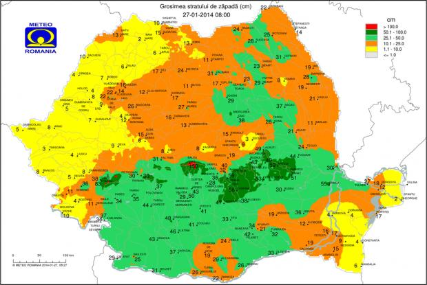 Iată harta cu grosimea stratului de zăpadă: