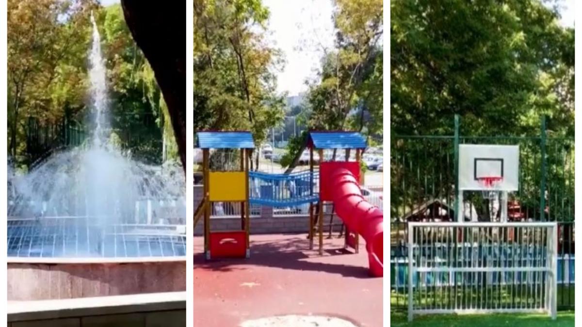 Noul spaţiu include aparate de joacă moderne, terenuri multisport, fântână arteziană şi mobilier stradal modern.