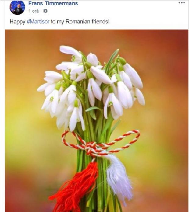 ”Happy #Martisor to my Romanian friends!” („Mărțișor fericit pntru pritenii mei români!”) a scris Timmermans pe pagina lui de Facebook.