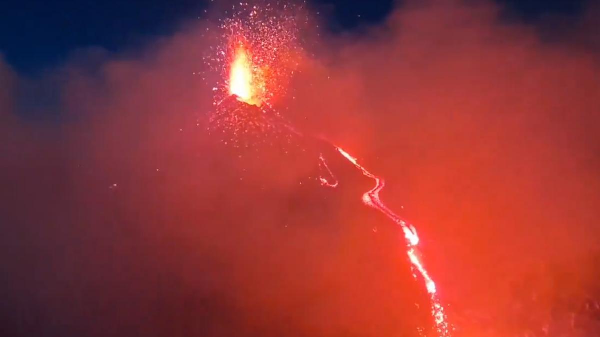 S-au auzit explozii puternice și bucăți incandescente au fost aruncate dintr-unul dintre cratere.