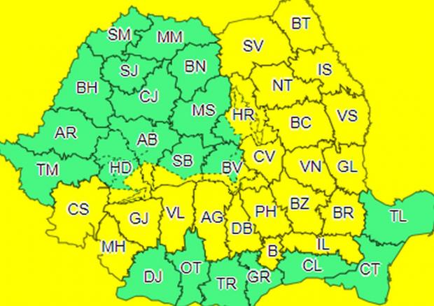 VREMEA 24 IANUARIE. ANM a emis un cod galben de vreme severă, valabil în intervalul 24 ianuarie, ora 04.00 - 25 ianuarie, ora 14.00.