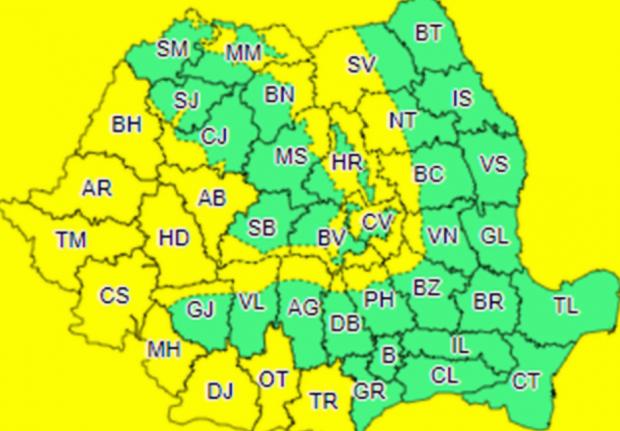Meteorologii au emis o atenţionare Cod galben privind intensificări ale vântului şi instabilitate atmosferică, începând de miercuri după-amiază, în judeţele Caraş-Severin, Timiş, Arad, Bihor, Hunedoara şi Alba, în timp ce în zona de munte se va semnala şi viscol.