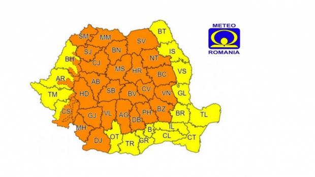 De asemenea, ANM a emis şi un cod galben de vreme rea, astfel că week-endul va fi unul ploios în aproape toată ţara.