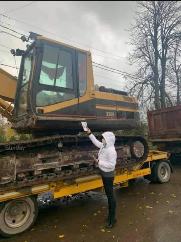 În imagini se poate observa că nicio persoană nu se află în cabina utilajului sau în apropiere, astfel că gestul Elenei Băsescu a fost de neînţeles.
