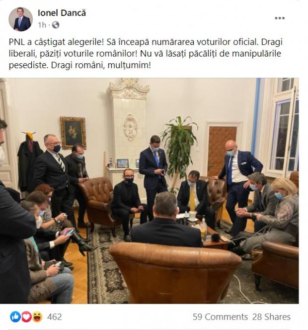 "PNL a câștigat alegerile! Să înceapă numărarea voturilor oficial. Dragi liberali, păziți voturile românilor! Nu vă lăsați păcăliți de manipulările pesediste. Dragi români, mulțumim!", a scris Ionel Dancă pe Facebook.