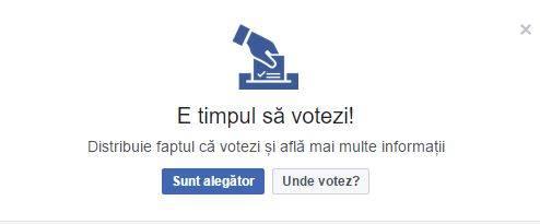 FACEBOOK te îndrumă spre SECȚIILE DE VOT. Românii au avut o surpriză în această dimineață, când au intrat pe Facebook. Ei au fost întâmpinați de un mesaj prin care li se spunea că „E TIMPUL SĂ VOTEZI!” și de două opțiuni pe care să le folosească sau să le împărtășească cu prietenii de pe Facebook.