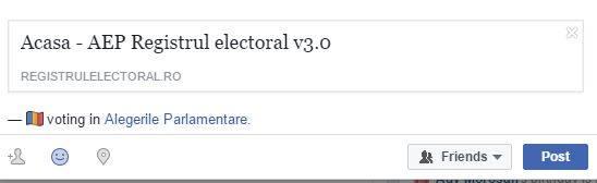 Prima opțiune le permitea utilizatorilor să le spună prietenilor că VOTEAZĂ la ALEGERILE PARLAMENTARE, alături de un mesaj personalizat și de un link către registrul electoral.