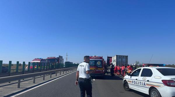 UPDATE Una dintre persoanele rănite în accidentul de pe Autostrada A4 a murit, potrivit centrului INFOTRAFIC din Inspectoratul General al Poliţiei Române.