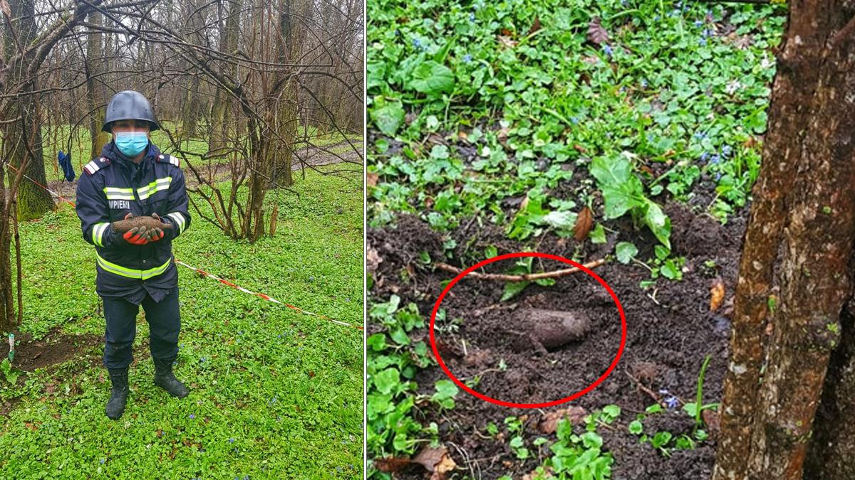 Potrivit echipei pirotehnice, muniţia se afla lângă un copac, acoperită aproape în totalitate de pământ. Aceștia au constatat că era vorba despre o bombă de aruncător, calibrul 82 mm.