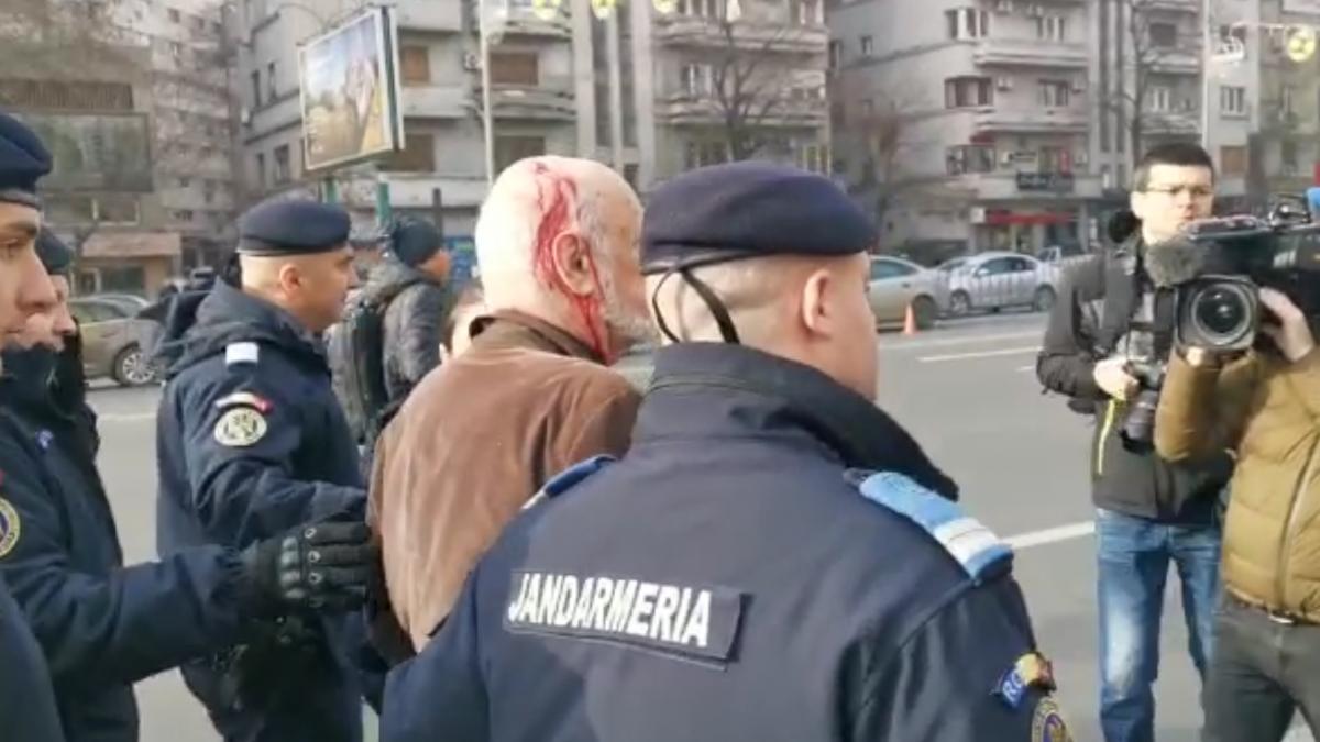 Unul dintre revoluționari l-a lovit cu o cârjă în cap și i-a spart capul. Individul este căutat de polițiști.