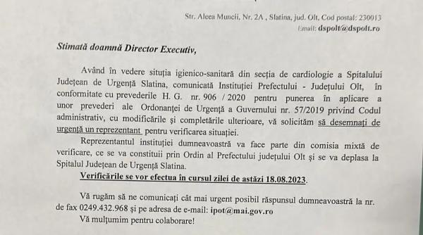 Prefectul Mario De Mezzo a făcut un scandal uriaș, vineri, atunci când nu a fost lăsat să însoţească echipa DSP care făcea un control la Spitalul Judeţean de Urgenţă Slatina.