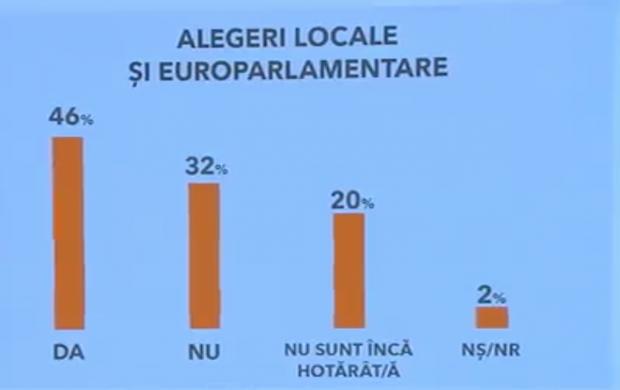 Alegeri locale si europarlamentare în România, interes și intenție de a merge la aceste alegeri, 46% spun că vor merge, 32% spun ca nu vom merge la alegeri, 20% spun că nu sunt hotărați și 2% nu știu, nu răspund”, a spus Mihai Gâdea.