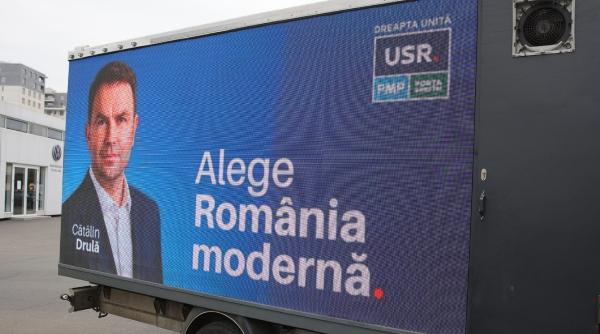 Pe ecrane au rulat și afișele USR cu Cătălin Drulă și mesajele: „Nu îi lăsa să îți fure viitorul. Alege România modernă”.