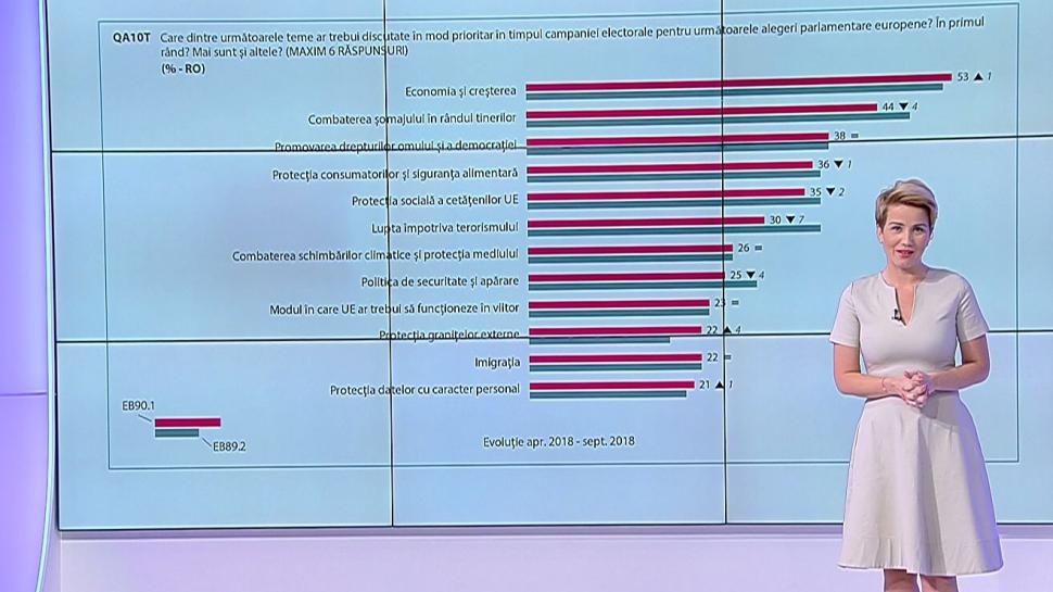 ”Personal, v-ar plăcea să vedeți că Parlamentul European joacă un rol mai important? Sau mai puțin important”, răspunsul românilor a fost în proporție de 63% ”A fost mai important”