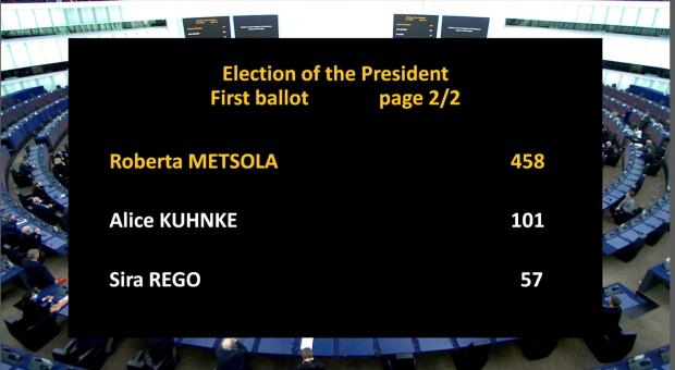 Roberta Metsola a primit 458 de voturi, chiar din primul tur, şi a fost aleasă în funcţia de preşedinte al Parlamentului European.