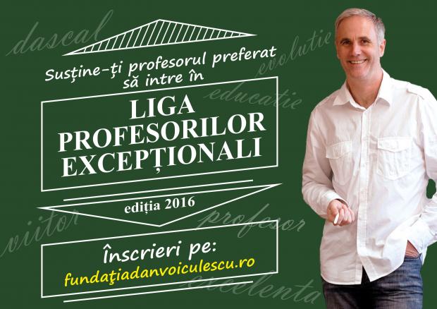 “Liga profesorilor excepţionali”, campanie iniţiată de Fundaţia Dan Voiculescu pentru Dezvoltarea României, a ajuns la cea de a treia ediţie. După doi ani în care cadre didactice valoroase, care şi-au dedicat mare parte din timp profesiei lor nobile, au fost promovate şi omagiate aşa cum ar fi normal să se întâmple într-o ţară europeană, FDVDR a luat decizia să reia această campanie şi în 2016. “Liga profesorilor excepţionali” a devenit cunoscută în întreagă ţară şi este apreciată deopotrivă de pedagogi şi elevi, dovadă stau numeroasele e-mail-uri şi mesaje pe care le-am primit. Ne face plăcere că putem continuă şi în acest an campania care pune în lumina valorile învăţământului din România”, a declarat Trisi Cristea, preşedintele Fundaţiei Dan Voiculescu pentru Dezvoltarea României. “Liga profesorilor excepţionali” încearcă să transforme un gest de reverenţă faţă de cadrele didactice într-o normalitate a zilelor noastre”.