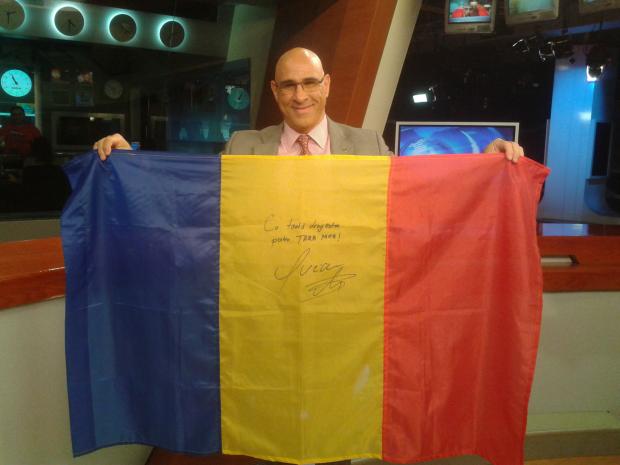Tricolorul oferit cadou de Antena 3 este chiar cel pe care sportivul l-a avut aproape de suflet la ultima lui victorie de la Montreal, în faţa rusului Denis Grachev.