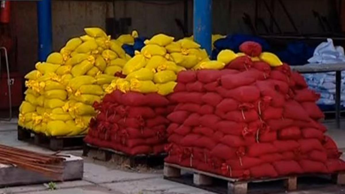 Peste 2.500 de saci cu nisip, în culorile tricolorului, au fost transportaţi la Aerodromul Clinceni. Sacii cu nisip au fost pregătiţi pentru ca drapelul sa nu fie luat de vânt.