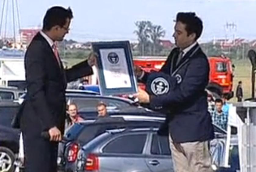 Reprezentantul GUINNESS WORLD RECORDS, Jack Brockbank, prezent pe Aerodromul Clinceni, a omologat noul record şi i-a înmânat lui Mihai Gâdea diploma care confirmă că tricolorul realizat de Antena 3 şi fabricadesteaguri.eu este cel mai mare din lume.
