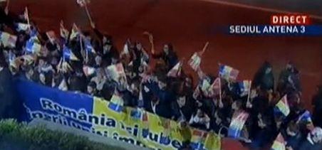 Trotuarul Antenei s-a colorat rapid în roşu, galben şi albastru, iar tinerii ne-au adus cadou un steag de 10 metri.