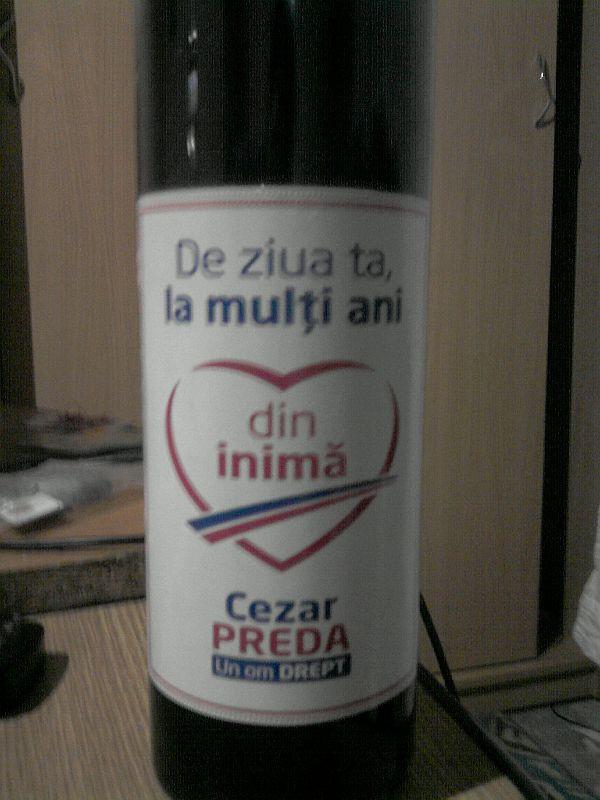 Astfel, pe adresa noastră de mail [email protected], Marian Bârlă ne-a trimis mai multe imagini în care se poate vedea "cadoul" primit de la candidatul ARD, Cezar Preda: o sticlă de vin.