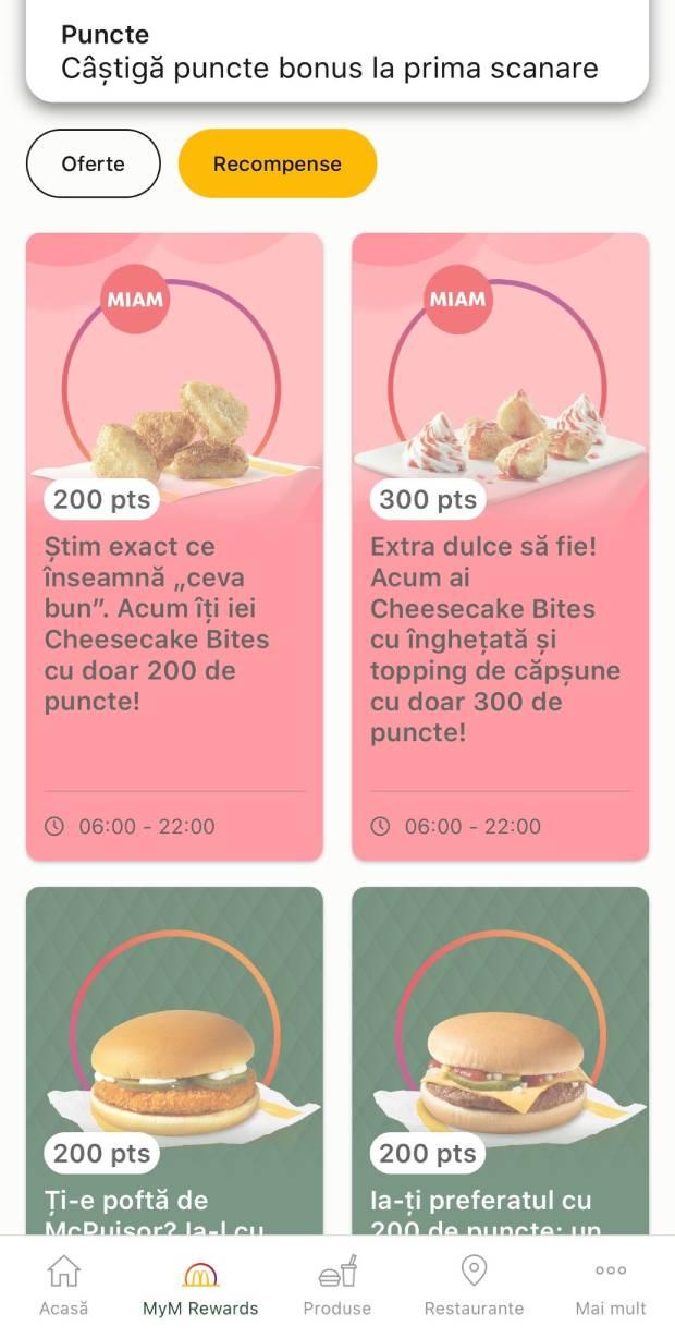 Aplicația McDonald`s România are peste 2,5 milioane de utilizatori. Programul de loialitate MyM Rewards a fost lansat în primăvara anului 2021. Odată cu această opțiune a devenit singura aplicație din industria QSR (Quick Service Restaurants) care oferă puncte de loialitate ce se transformă în produse din partea casei. În aplicație a fost dezvoltată și o componentă de gamification, cu jocuri tematice și quizuri disponibile pentru diferite ocazii speciale, așadar un alt bonus pentru utilizatori, care se pot distra câștigând premii.