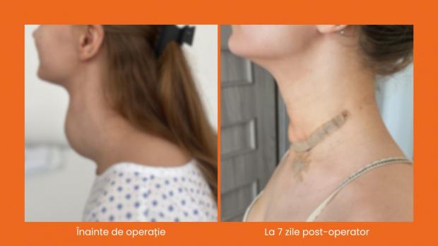 Din cauza vascularizației foarte abundente și a dimensiunilor gigant ale tumorii (greutate 1580 g, diametrul tumoral 36 centimetri), o astfel de intervenție durează în mod obișnuit 5 - 6 ore. Dar mulțumită dispozitivelor de sigilare vasculară și a dispozitivului de neuromonitorizare cu care este dotat blocul operator, intervenția a durat 2 ore. Operația de tiroidă a decurs fără complicații. Pacienta, a cărei viață s-a schimbat post-operator, se recuperează rapid și a fost externată la doar o zi după intervenție, fără dureri și fără riscuri.