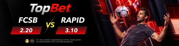 Deși se află pe locul 9, iar Rapidul este lider, FCSB are prima șansă la victorie, conform cotelor afișate pe platforma Topbet pariuri sportive. 2.20 este cota pentru un succes al „roș-albaștrilor”, în timp ce un succes al Rapidului este cotat cu 3.10.