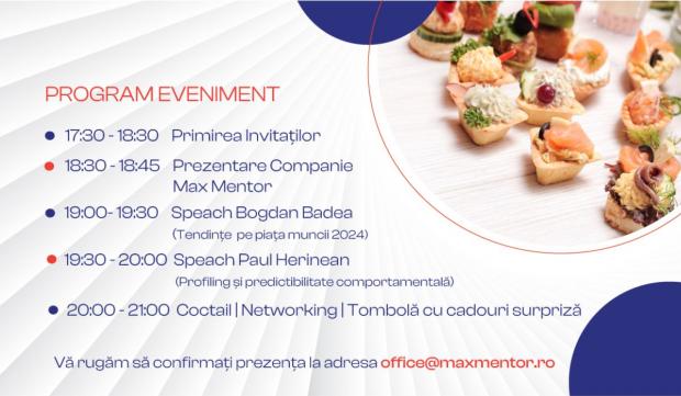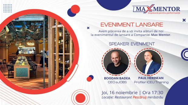 În cadrul evenimentului de lansare, care va avea loc pe data de 16 noiembrie 2023 la restaurant Pescăruș din Herăstrău, București, Max Mentor își propune să aducă un aport esențial în formarea profesională a angajaților din companii, ajutându-i să își maximizeze potențialul.