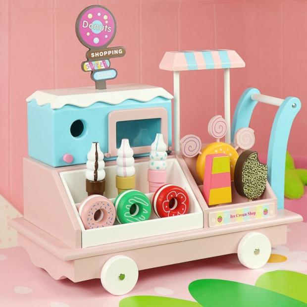 Asigură-te că îi stimulezi această creativitate prin intermediul unei jucării care provoacă jocul de rol! Noi îți propunem un cărucior cu înghețată și dulciuri din lemn! Vei vedea cum ușor-ușor copilul tău va începe să își imagineze conversația dintre un vânzător de dulciuri și un potențial client.
