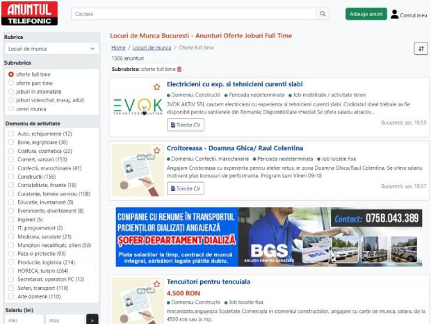 Găsești anunțuri de actualitate din toate aceste domenii și multe altele. Site-ul îți permite, de asemenea, să alegi tipul de colaborare (perioadă nedeterminată, perioadă determinată etc), dacă vrei ca jobul să aibă o locație fixă, hibrid sau de tip telemuncă, precum și să selectezi județul în care dorești să găsești anunțuri de angajare.