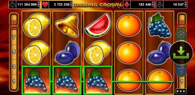„Shining Crown” este unul dintre cele mai populare păcănele cu fructe și șeptari. Având tot timpul un număr impresionant de jucători, fondul de premiere crește rapid, iar jackpotul progresiv ajunge la cote impresionante. Cel mai valoros simbol este șeptarul, iar coroana este Wild expandabil.