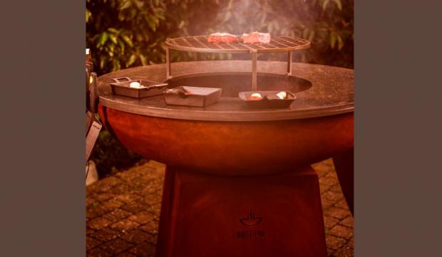 Acest grătar reprezintă noua tendință de gătit în aer liber. Acest grătar va transforma totul în experiențe plăcute și de neuitat. Baza și vasul grătarului sunt fabricate din oțel Corten. Grila separată se poate folosi pentru gătit. Vasul se umple cu lemne, iar apoi se trece la gătit cu ulei în jurul focului. Opțional, la acest grătar se pot adăuga roți pentru a putea fi mutat dintr-o parte în alta. Suportul pentru a realiza un foc de tabără este potrivit pentru absolut orice tip de locație. Sunt disponibile și ustensile grătar profesionale: masă, grătar, suport grătar foc de tabără, capac grătar și grilă.