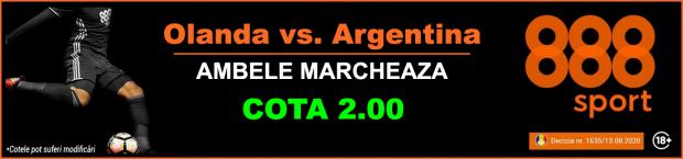 Argentina pornește așadar cu prima șansă la pariuri și are cota 1.60 să obțină calificarea, în timp ce Olanda are cota 2.30. Cota pentru un succes în 90 de minute este 2.20 pentru Argentina, egalul are 3.15, iar succesul olandezilor are 3.55. Cei care cred că se vor marca peste 2.5 goluri pot miza pe cota 2.30, în timp ce cota pentru un meci cu mai puține goluri este 1.53, iar pariul pentru ambele marchează este cotat cu 2.00.