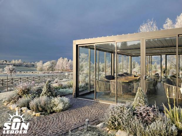 Românii nu mai caută doar umbră pentru cele 3 luni de vară. Tendința actuală este amenajarea completă a terasei, pentru a fi folosită 12 luni pe an. Prin adăugarea unor sisteme de închidere cu sticlă securizată (sisteme glisante manual sau ghilotină electrică), terasa devine o extensie a livingului, un spațiu protejat de zăpadă și ger.