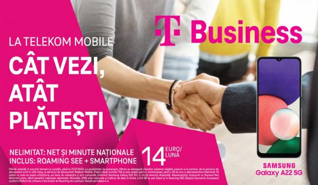 Mai mult decât atât, daca vrei să te bucuri de vară și de vacanța cu un telefon nou, Telekom Mobile a pregătit cele mai HOT oferte cu beneficii naționale nelimitate (minute, SMS, internet, toate nelimitate), acces roaming SEE inclus, dar și smartphone-uri de top, fie incluse (Samsung Galaxy A22 5G inclus în abonamentul Nelimitat 14, la 14 euro/lună, sau Samsung Galaxy A33 5G inclus în planul tarifar Nelimitat 18, la 18 euro/lună), fie disponibile în rate la preţuri speciale împreună cu noile abonamente.