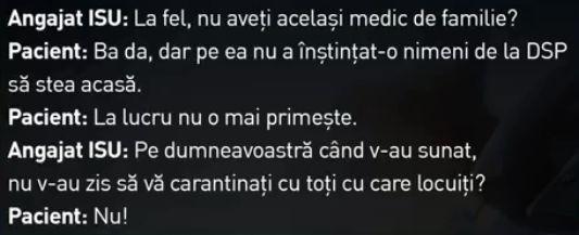 Bolnavul a sunat la DSP și a întrebat-o pe angajata care i-a răspuns când vine cineva să facă o anchetă epidemiologică, el fiind testat pozitiv. Ce a făcut reprezentantul DSP? A început să râdă!