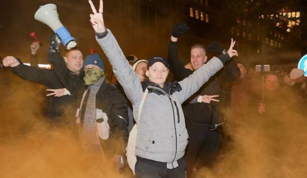Forțele de ordine au folosit tunurile după ce unii participanți la protest au început să arunce cu pietre și materiale pirotehnice în polițiști.