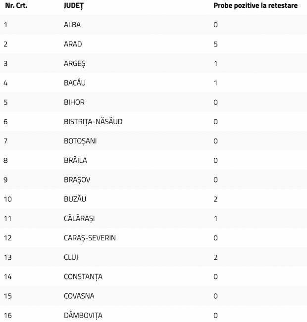 Până la această dată, la nivel național, au fost prelucrate 10.999.208 teste RT-PCR și 5.902.869 de teste rapide antigenice. În ultimele 24 de ore au fost efectuate 3.432 de teste RT-PCR (1.452 în baza definiției de caz și a protocolului medical și 1.980 la cerere) și 6.342 de teste rapide antigenice.